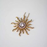 La horquilla sol está hecha en latón puro, con detalle de cristales en el centro. Mide un total de 5 centímetros de diámetro y lleva horquilla para sujetar el pelo.