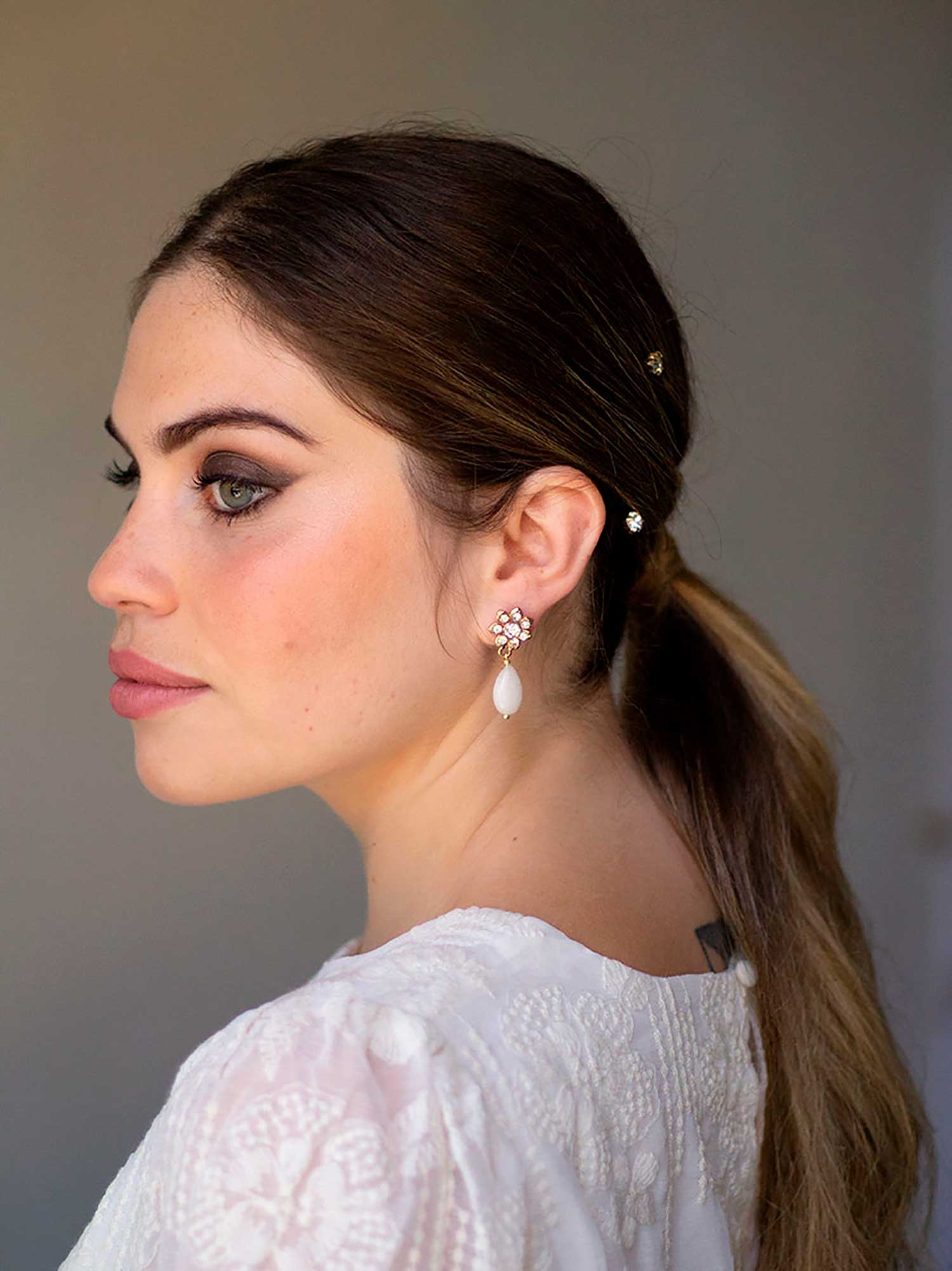 ¿Estás buscando un pendiente especial, discreto y elegante para tu gran día? El modelo Capri es tu mejor elección. Son los pendientes de novia perfectos, aportan mucha luz sin ser excesivos.