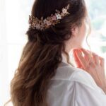 Una vez terminada la pieza, le colocamos las peinetas en los laterales para una mejor sujeción y que no se solapen con la peineta o sujeción del velo. Además, lleva arandelas en los extremos para poder introducir horquillas.