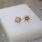Anillo abierto, con dos estrellas Anubis con cristales en blanco y gris oscuro. Está hecho de latón puro y bañado en oro de 18k.