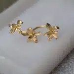 Anillo de flores trepadoras abierto. Está hecho en latón puro y bañado en oro de 18k.