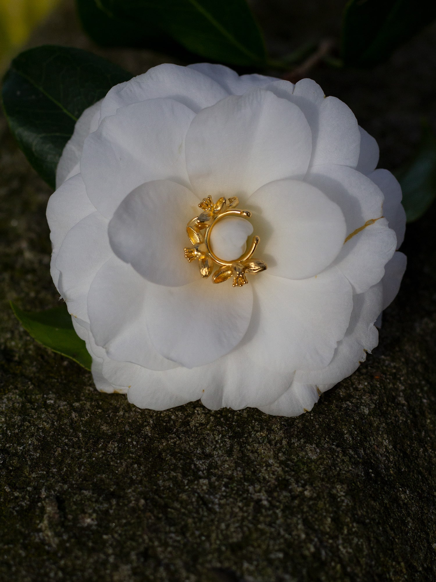 El Earcuff Zanzibar es un pequeño jardín secreto que escala por tu oreja, aportando un destello botánico y sofisticado sin necesidad de agujeros adicionales. Formado por tres flores minúsculas meticulosamente esculpidas, esta pieza de latón bañado en oro captura la esencia de la naturaleza en su estado más delicado. Es ese toque de rebeldía elegante, nacido en nuestro taller de Oviedo, para quienes entienden que la verdadera distinción reside en los detalles inesperados.