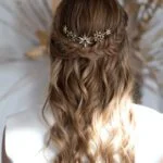 Tiene una medida total de 16 cm. La estrella central es más grande, de 3,6 cm, y en los laterales disminuyen hacia los extremos. Este modelo lleva los cristales en color cristal y verde esmeralda, pero se pueden personalizar para que combine con el resto de complementos de tu look nupcial.