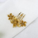 Peineta formada por 3 flores de almendro de latón, una grande y dos pequeñas. Mide 5 cm y es perfecta para adornar un recogido.