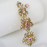 Las flores llevan pequeños cristales para darle luz y un cristal central más grande. Lo hemos colocado en rosa, pero puedes elegir de qué color lo quieres, ya que como todas nuestras piezas, las realizamos bajo pedido en nuestro taller.