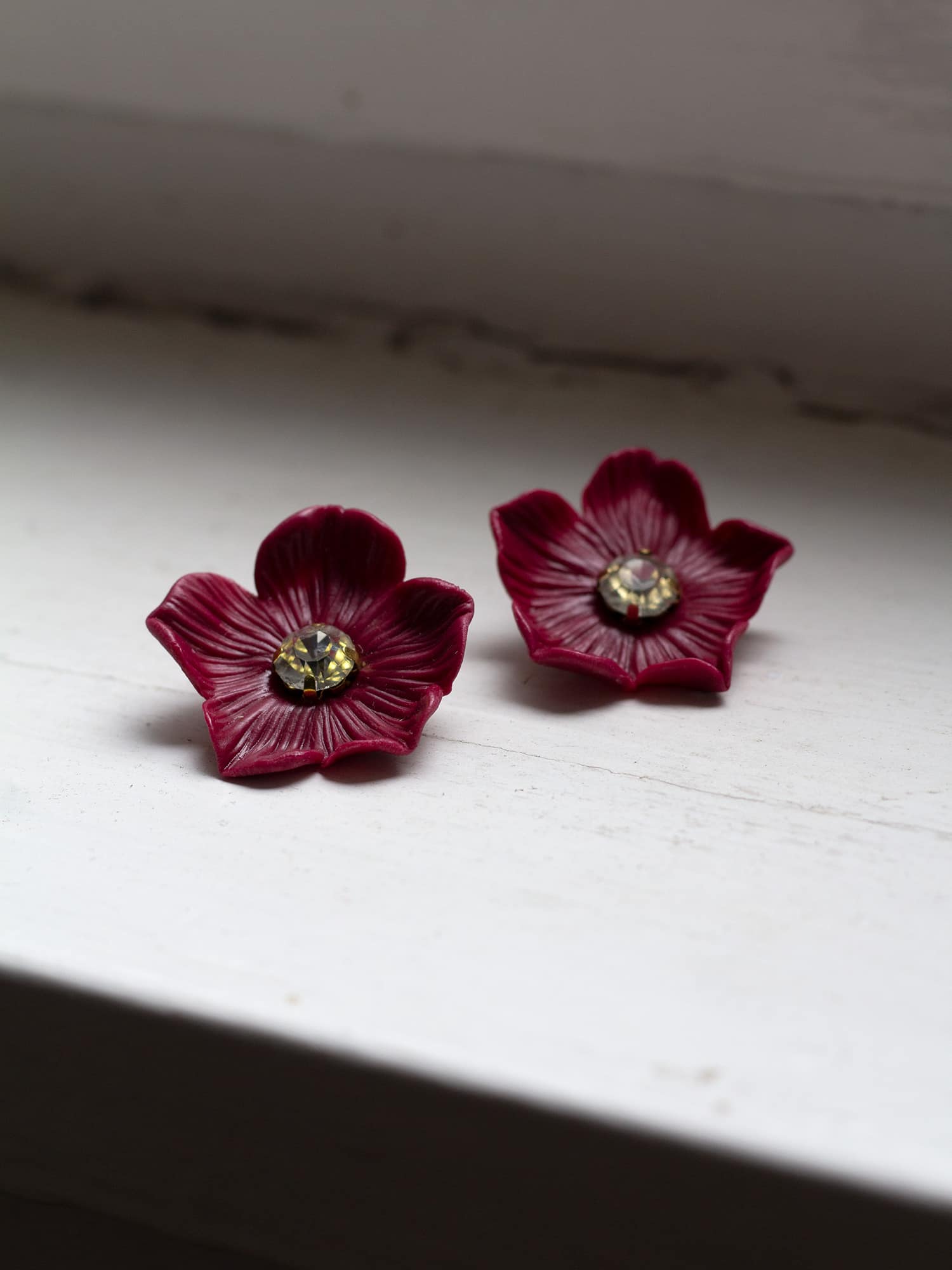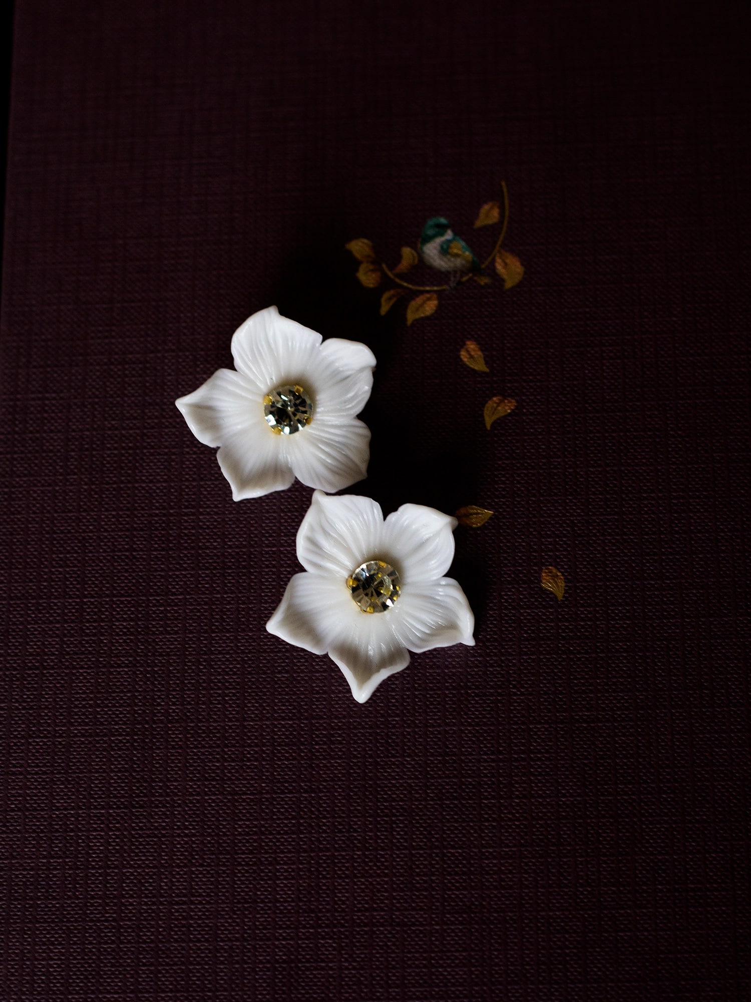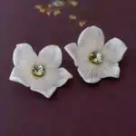 Un homenaje a nuestras flores y a nuestros inicios. Nuestra flor de porcelana moldeada una a una con nuestra propia masa de porcelana, sin moldes. Por eso el tamaño es orientativo y puede variar.