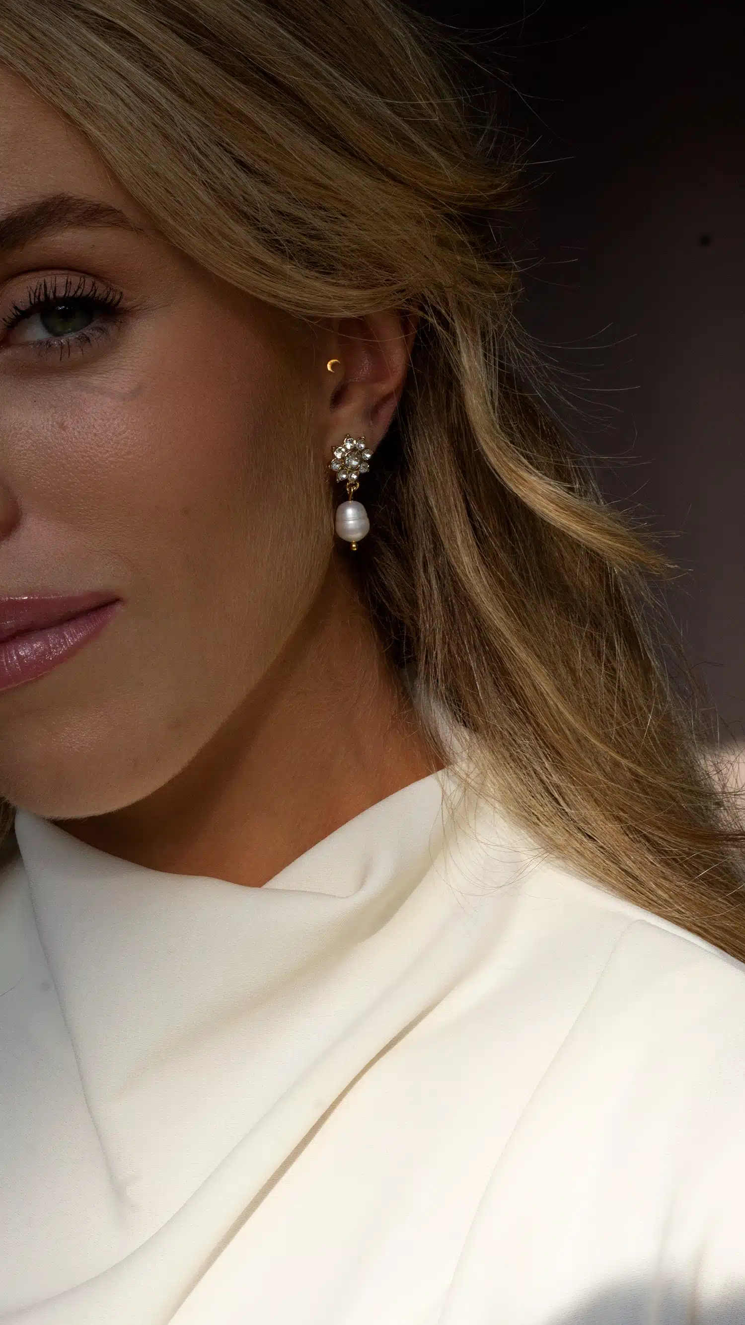 Estos pendientes son la combinación perfecta entre elegantes y discretos. Si quieres un pendiente que te de luz al rostro para tu gran día, y que la vez sea sencillo, los Orosei cortos son tus pendientes de novia.