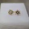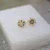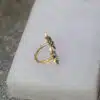 Anillo abierto, con dos estrellas Anubis con cristales en blanco y gris oscuro. Está hecho de latón puro y bañado en oro de 18k.